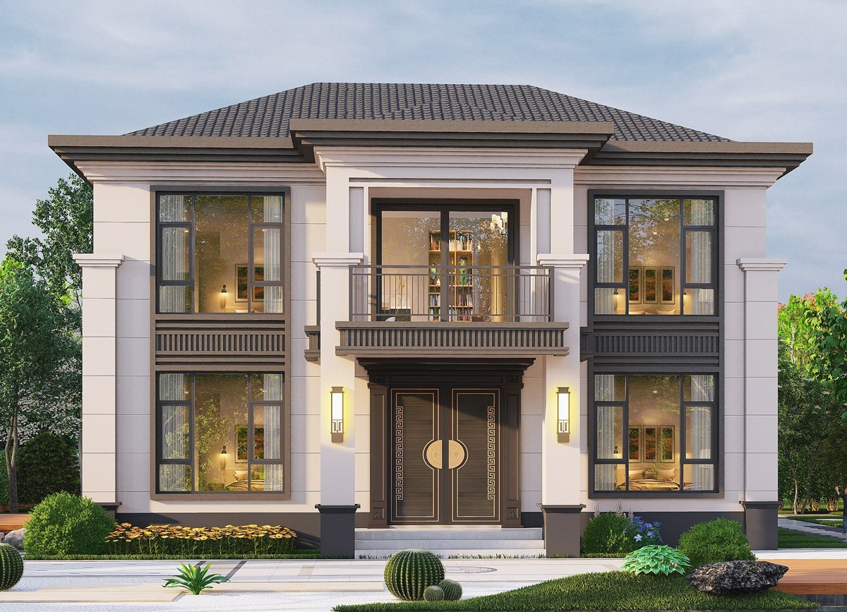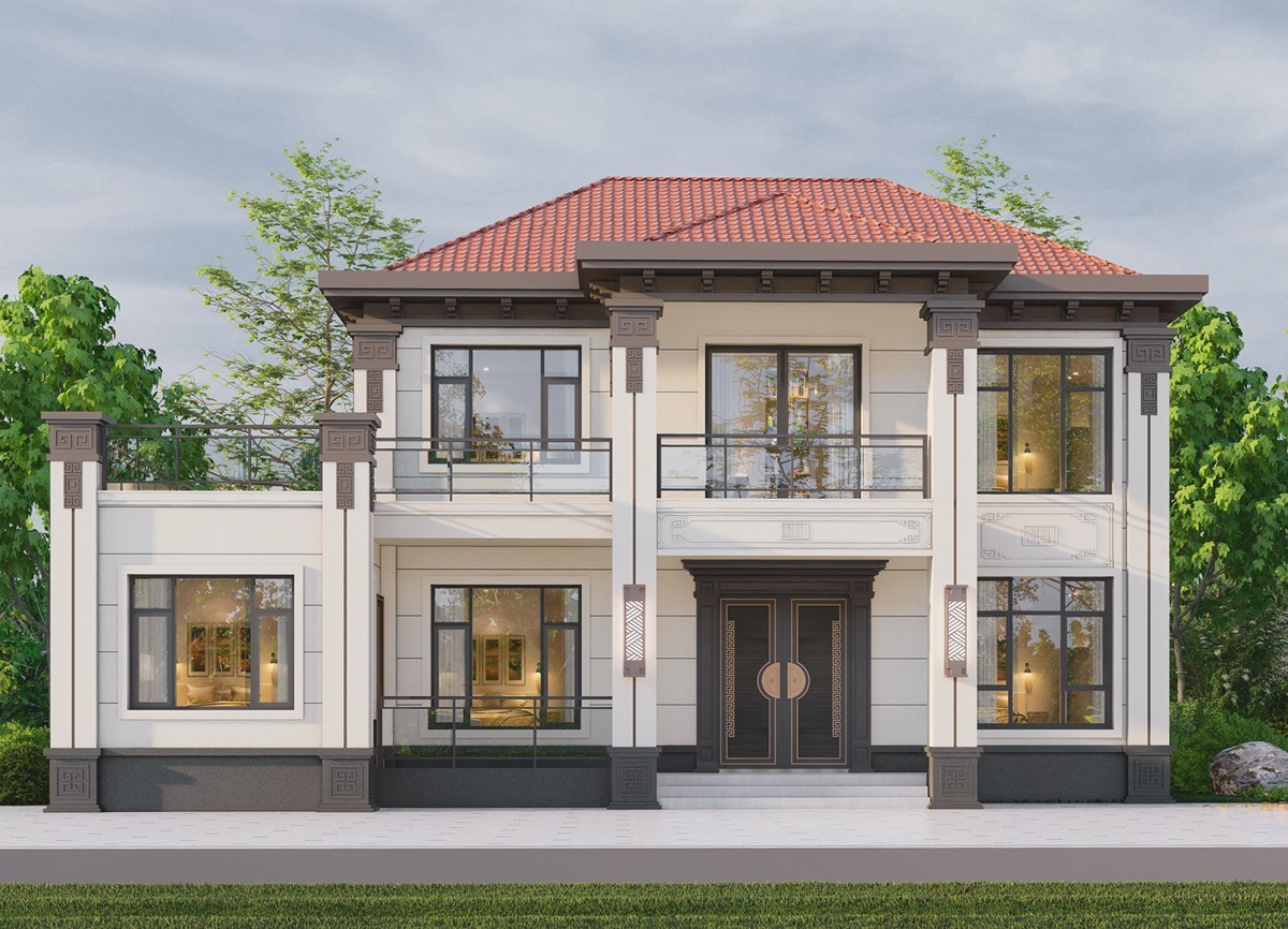 佳木斯005 两层新中式(11.36x11.76米)-【易设计】